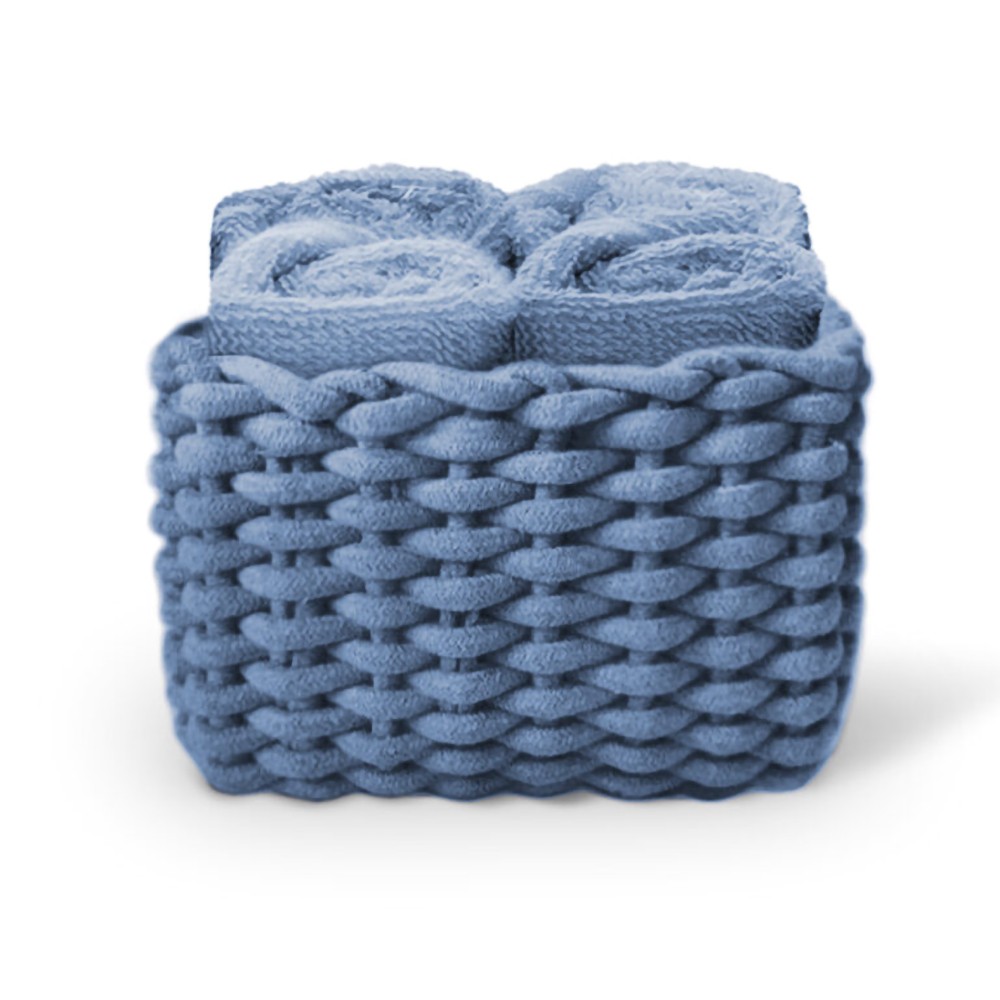 CARATTERISTICHE: Set composto da 4 lavette tinta unita confezionate in un cestino in maglia.