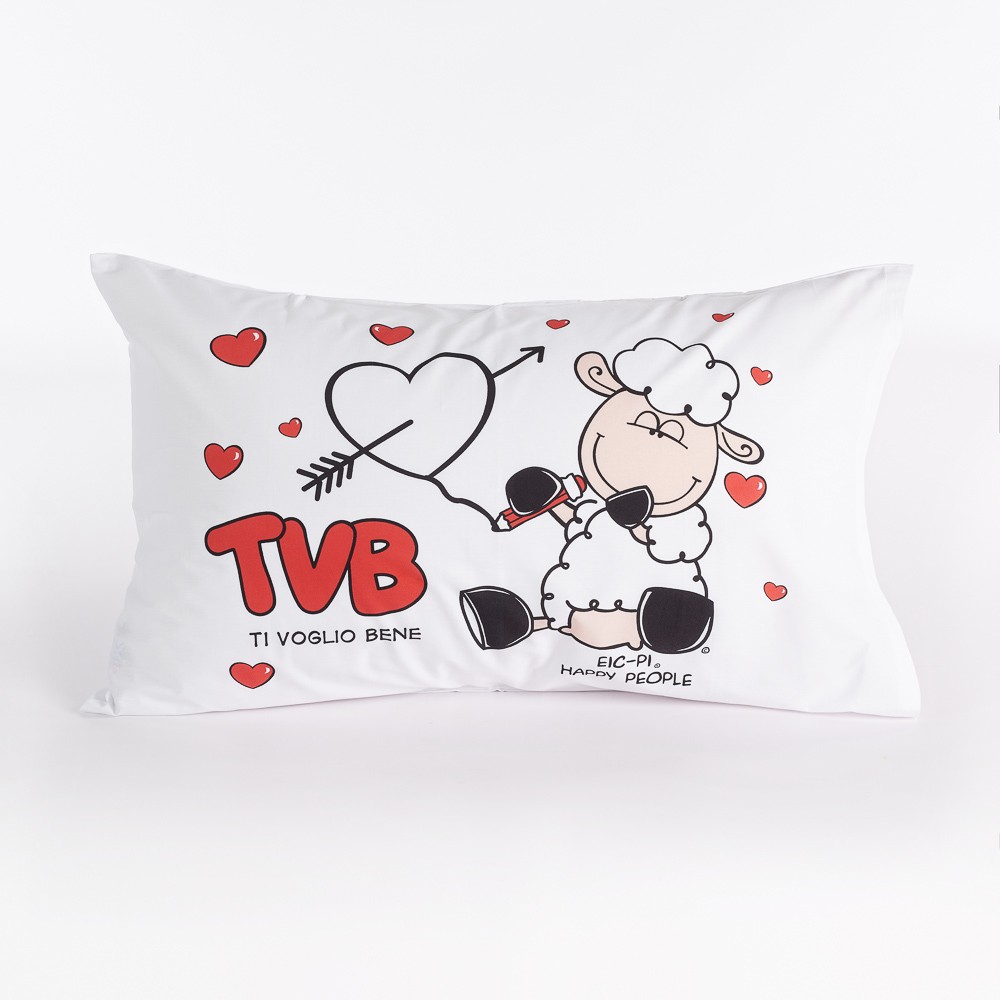 CARATTERISTICHE: Federa a sacchetto con stampa dei soggetti Eic Pi – Happy People su fondo bianco.
