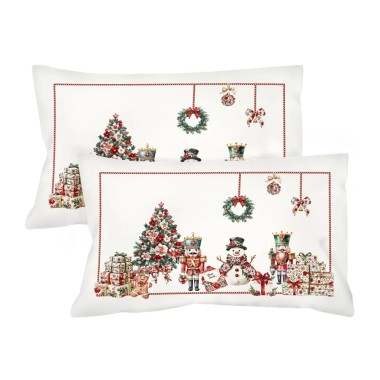 Luz Coppia di Federe Natalizie in Raso di Cotone