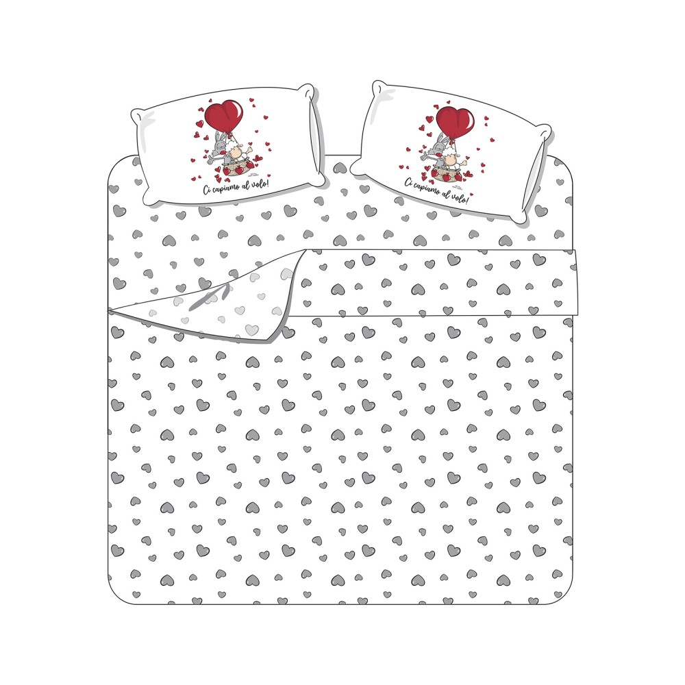 Completo lenzuola Capirsi al Volo in percalle 100% cotone, firmato Happy People by Via Roma 60.