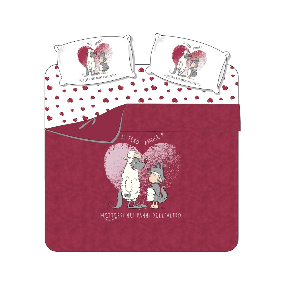 Completo lenzuola Amore Vero in percalle 100% cotone, firmato Happy People by Via Roma 60.