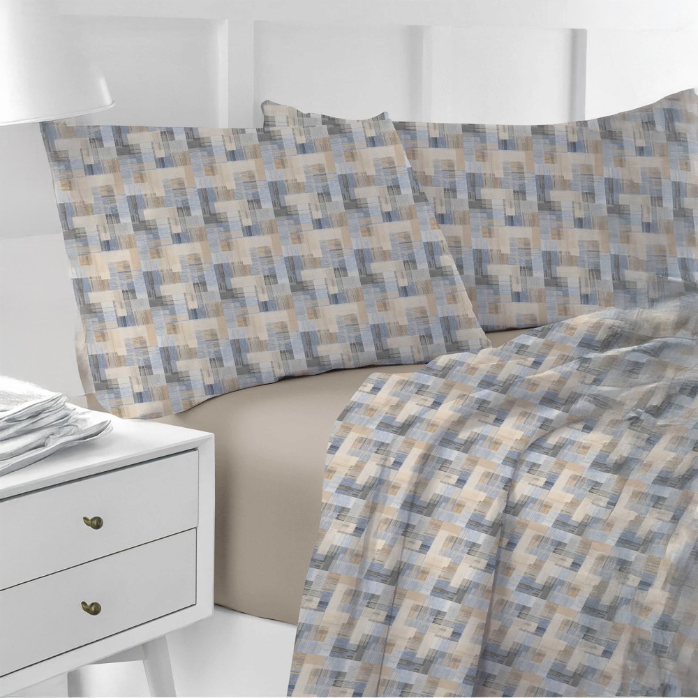 Set lenzuola matrimoniali in puro cotone con rombi multicolore in stampa digitale.