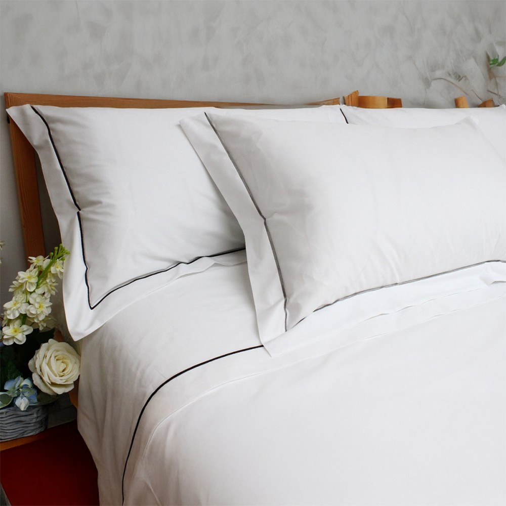 Completo letto-copriletto in percalle di puro cotone pettinato da 80 fili/cmq della Collezione Privè di Somma.