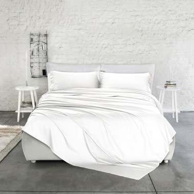 Completo letto Luxury in percalle di puro cotone con elegante bourdon ricamato. Tessuto compatto e uniforme, pensato per durare e offrire una sensazione di freschezza quotidiana. Made in Italy