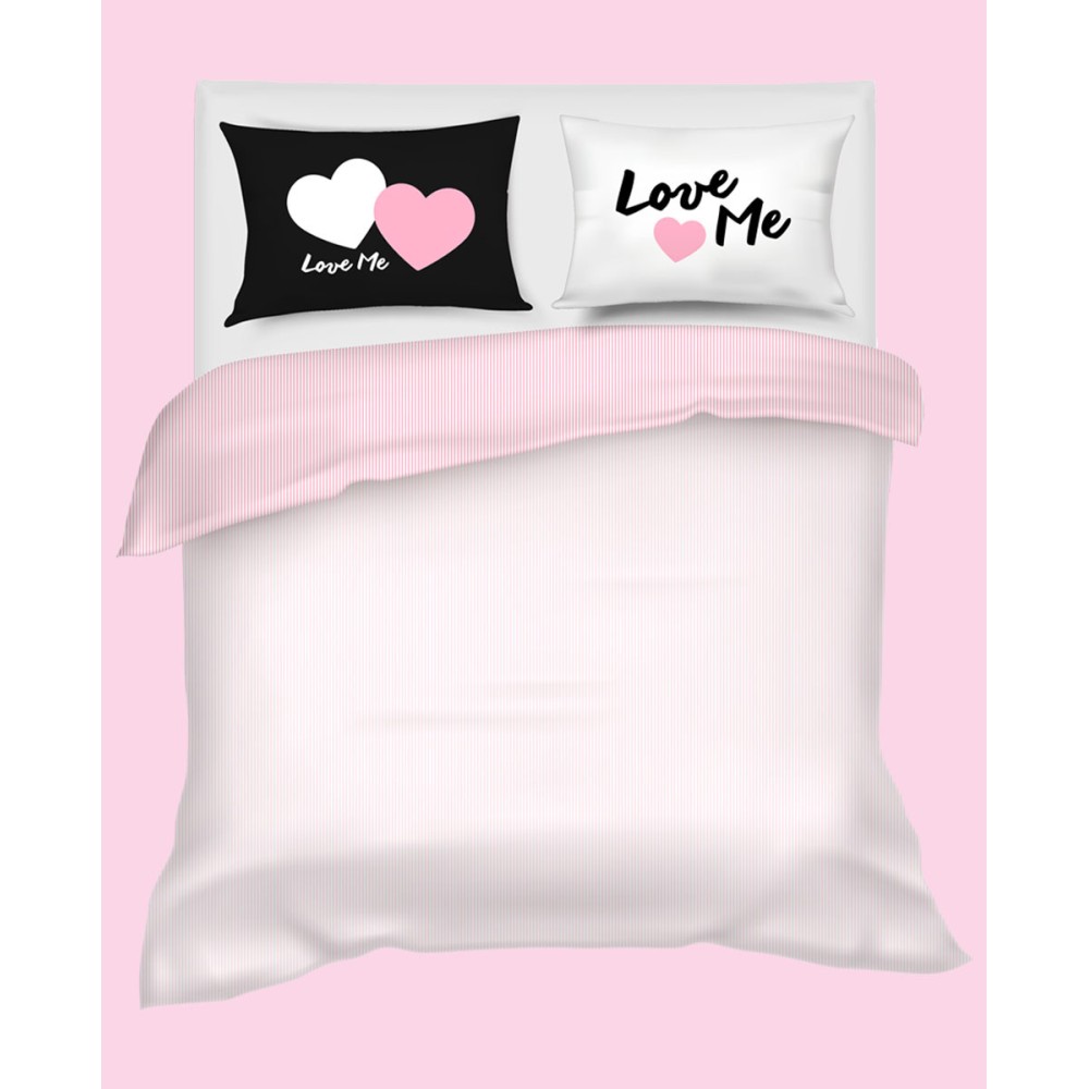 Il lenzuolo sopra è caratterizzato da stampa all over e orlo rifinito da 8 cm, mentre la federa a sacchetto presenta stampa piazzata. Il lenzuolo sotto con angoli stampato garantisce una vestibilità stabile sul materasso. La federa inclusa double-face “Love Me” completa il set con un dettaglio distintivo.