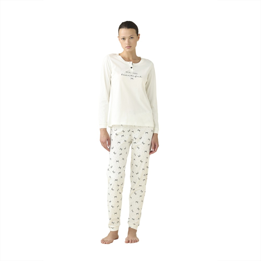 Pigiama Donna in Cotone con Top Manica Lunga e Pantalone con Fantasia a Quadretti. Disponibile in Tre Colori