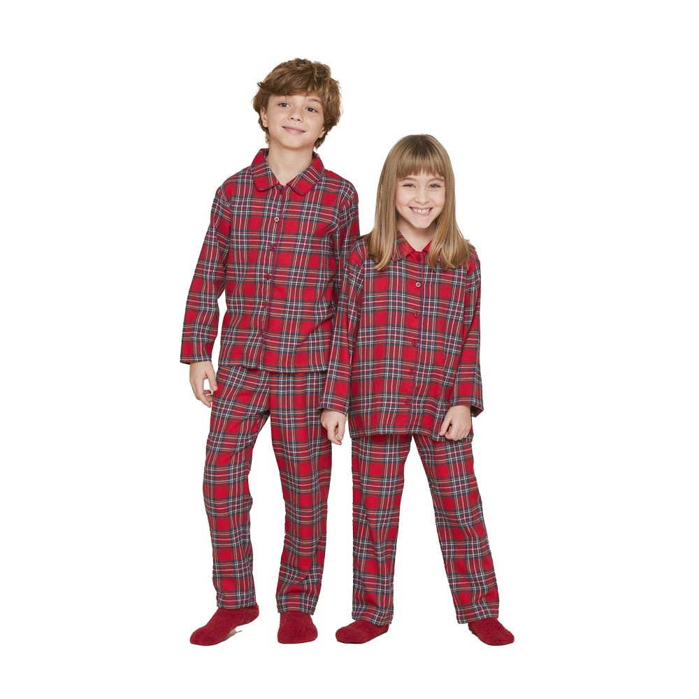 Pigiama donna in caldo cotone, modello maschile con colletto e apertura frontale. Realizzato in tessuto morbido e confortevole con fantasia tartan. Perfetto per la stagione invernale.