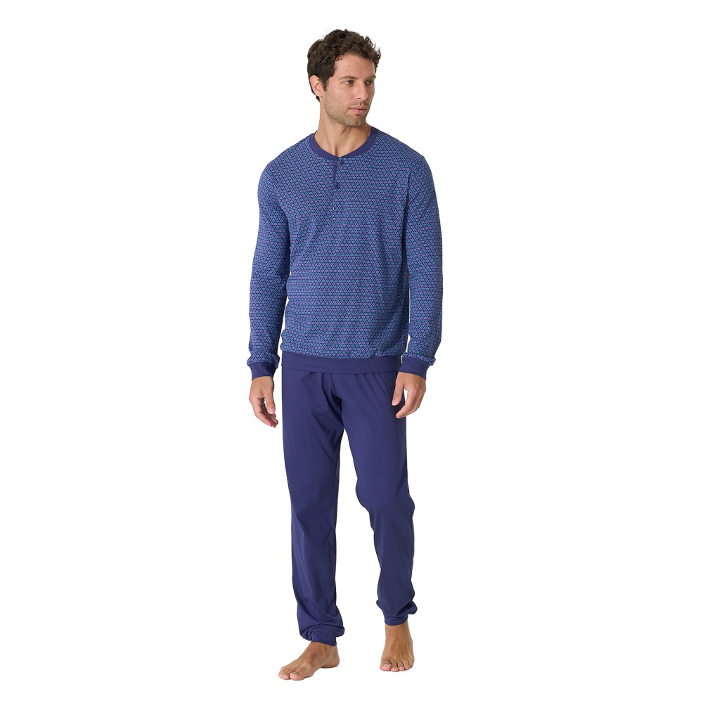 Pigiama da uomo in cotone composto da 3 pezzi: top manica corta, pantalone corto e pantalone lungo. Disponibile in due varianti colore: Ottanioe Prugna. Perfetto per le stagioni calde grazie alla leggerezza del cotone.