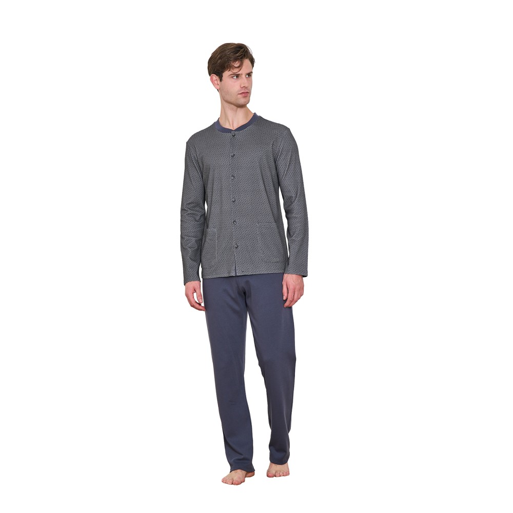 Pigiama Uomo Invernale Aperto con Microfantasia – Blu – Fino alla Taglia 60