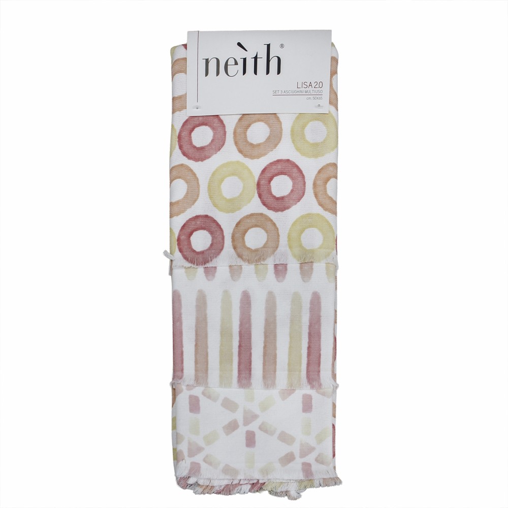 Un set pratico e decorativo composto da tre strofinacci assortiti in puro cotone: un mix di fantasie coordinate e texture diverse per portare colore e funzionalità nella tua cucina.
