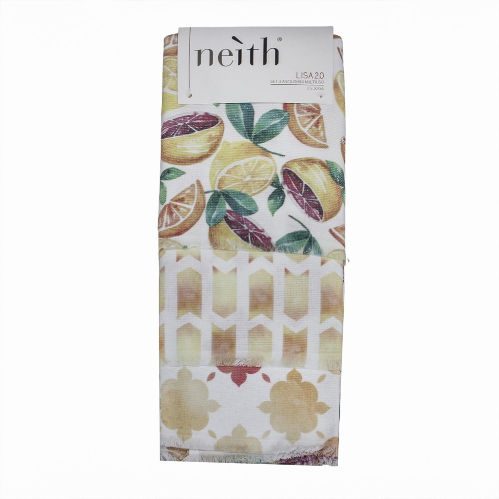 Un set pratico e decorativo composto da tre strofinacci assortiti in puro cotone: un mix di fantasie coordinate e texture diverse per portare colore e funzionalità nella tua cucina.