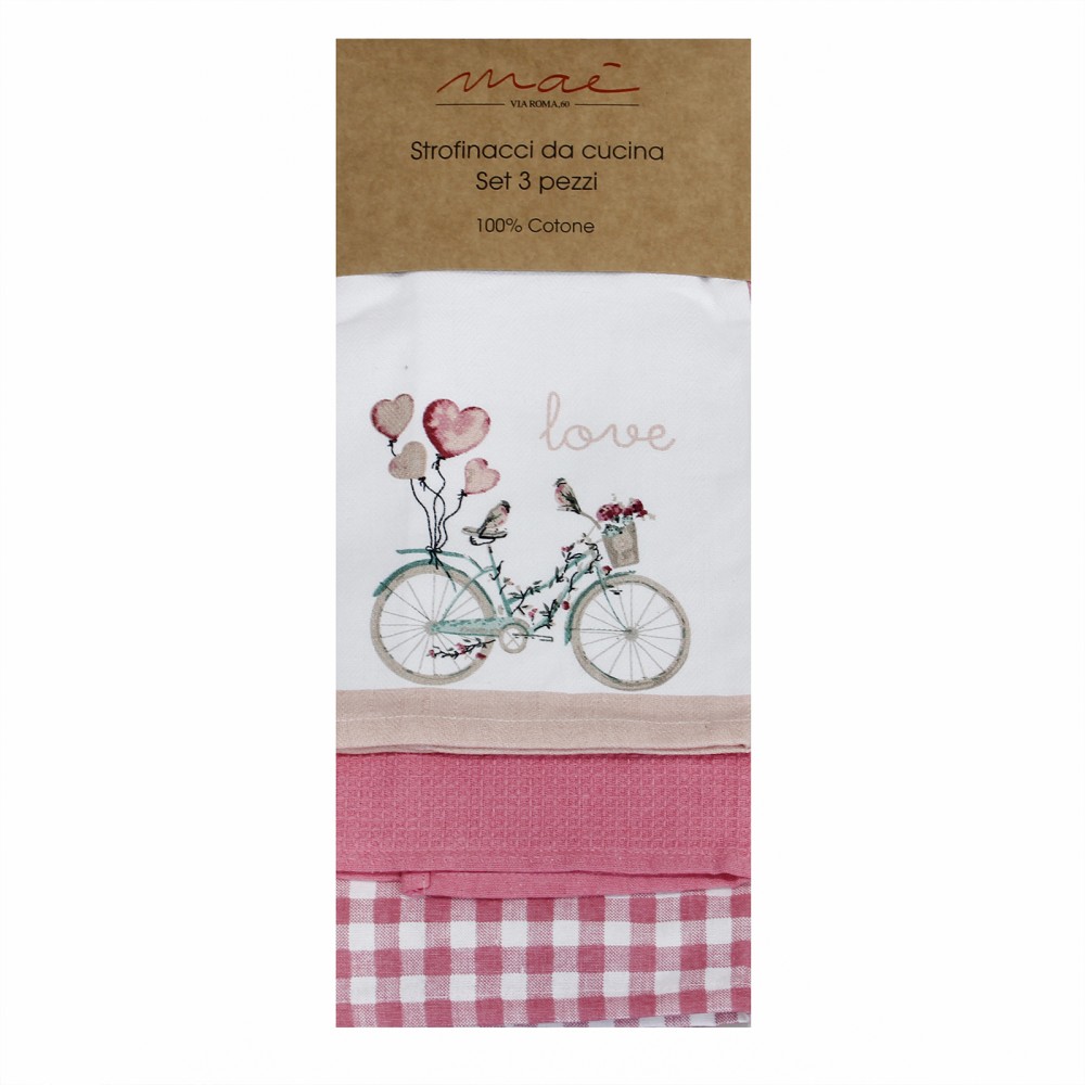 Un set pratico e decorativo composto da tre strofinacci assortiti in puro cotone: un mix di fantasie coordinate e texture diverse per portare colore e funzionalità nella tua cucina.