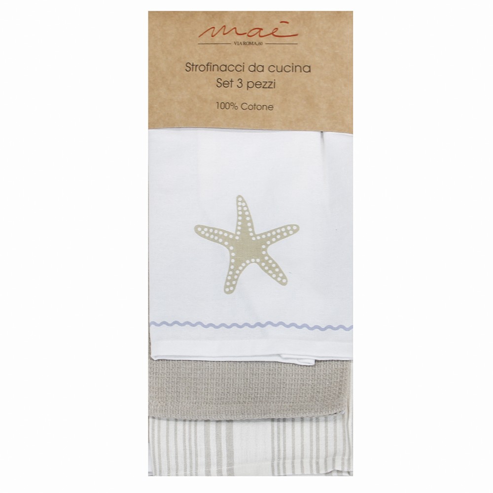 Un set pratico e decorativo composto da tre strofinacci assortiti in puro cotone: un mix di fantasie coordinate e texture diverse per portare colore e funzionalità nella tua cucina.