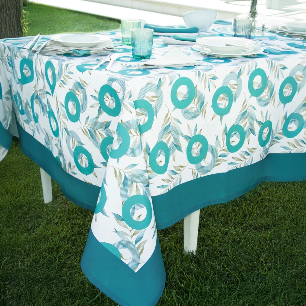 La tovaglia Candy (dis. 24187) è stampata con tecnica digitale su panama di puro cotone con applicazione di nastro perimetrale.