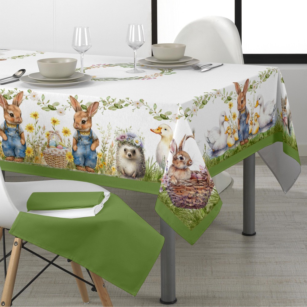 La tovaglia Passerotti (dis. 24862) è stampata con tecnica digitale e con motivo piazzato su panama di puro cotone.