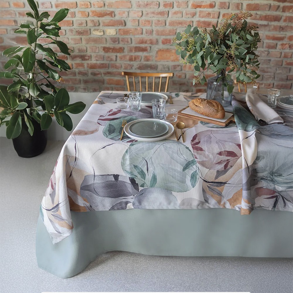 La tovaglia Passerotti (dis. 24862) è stampata con tecnica digitale e con motivo piazzato su panama di puro cotone.