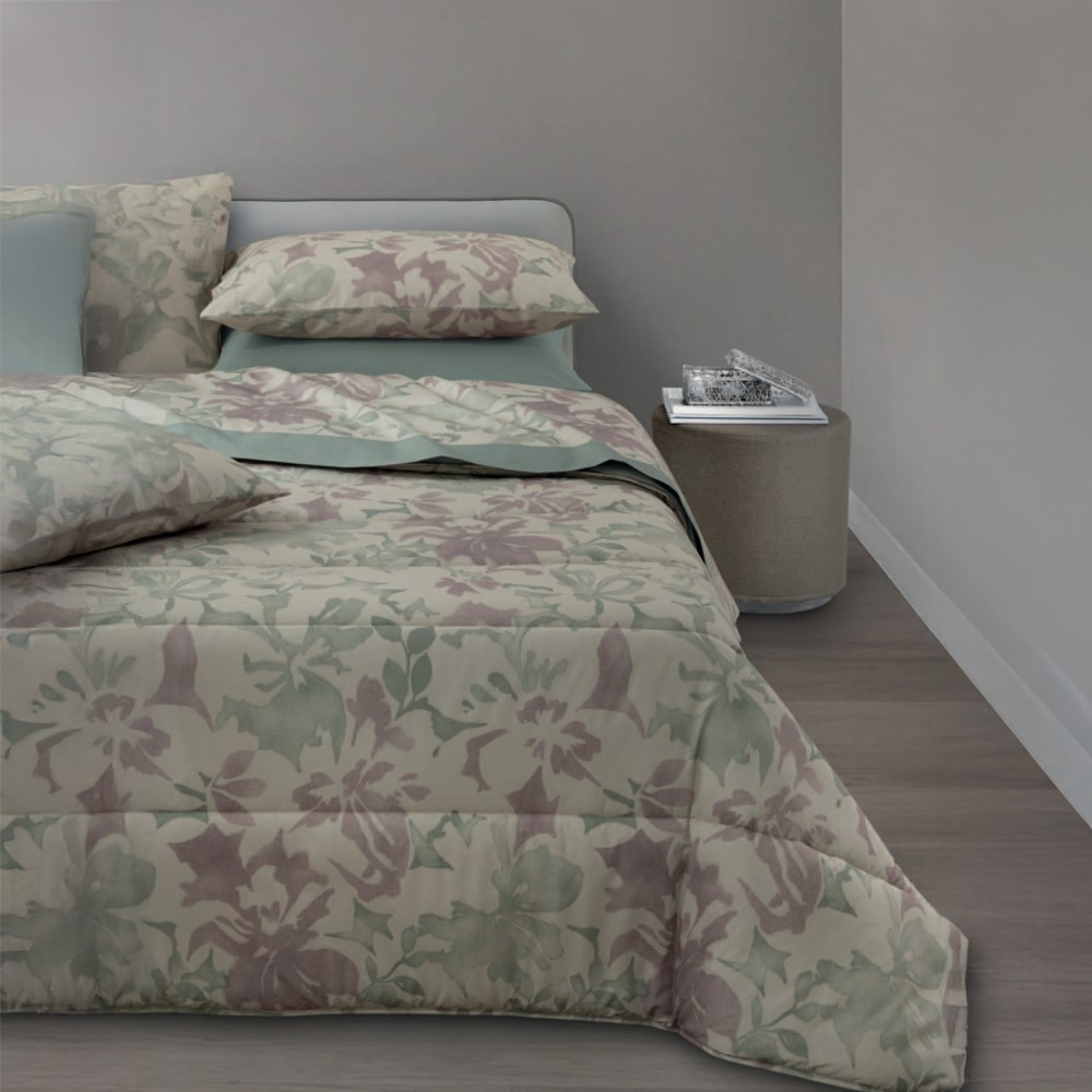 Trapunta AURUM della linea TRENDY di GABEL stampata con tecnica digitale su tessuto Sweet touch, morbida saia jacquard di puro cotone da 58 fili al cmq.